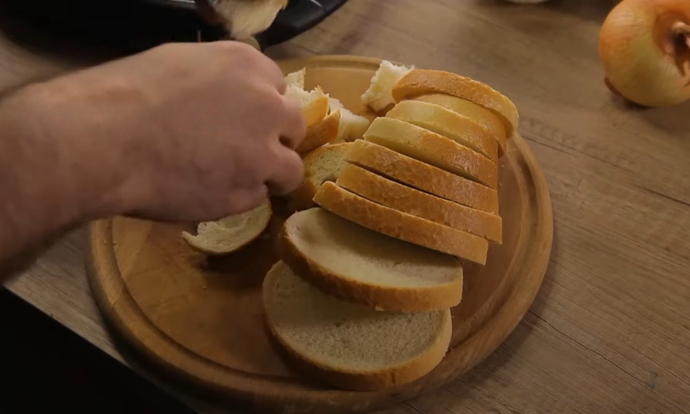 Hleb isecite na krupnije kocke ili ga iskidajte rukama. Kora hleba daje poseban ukus, nemojte je bacati.